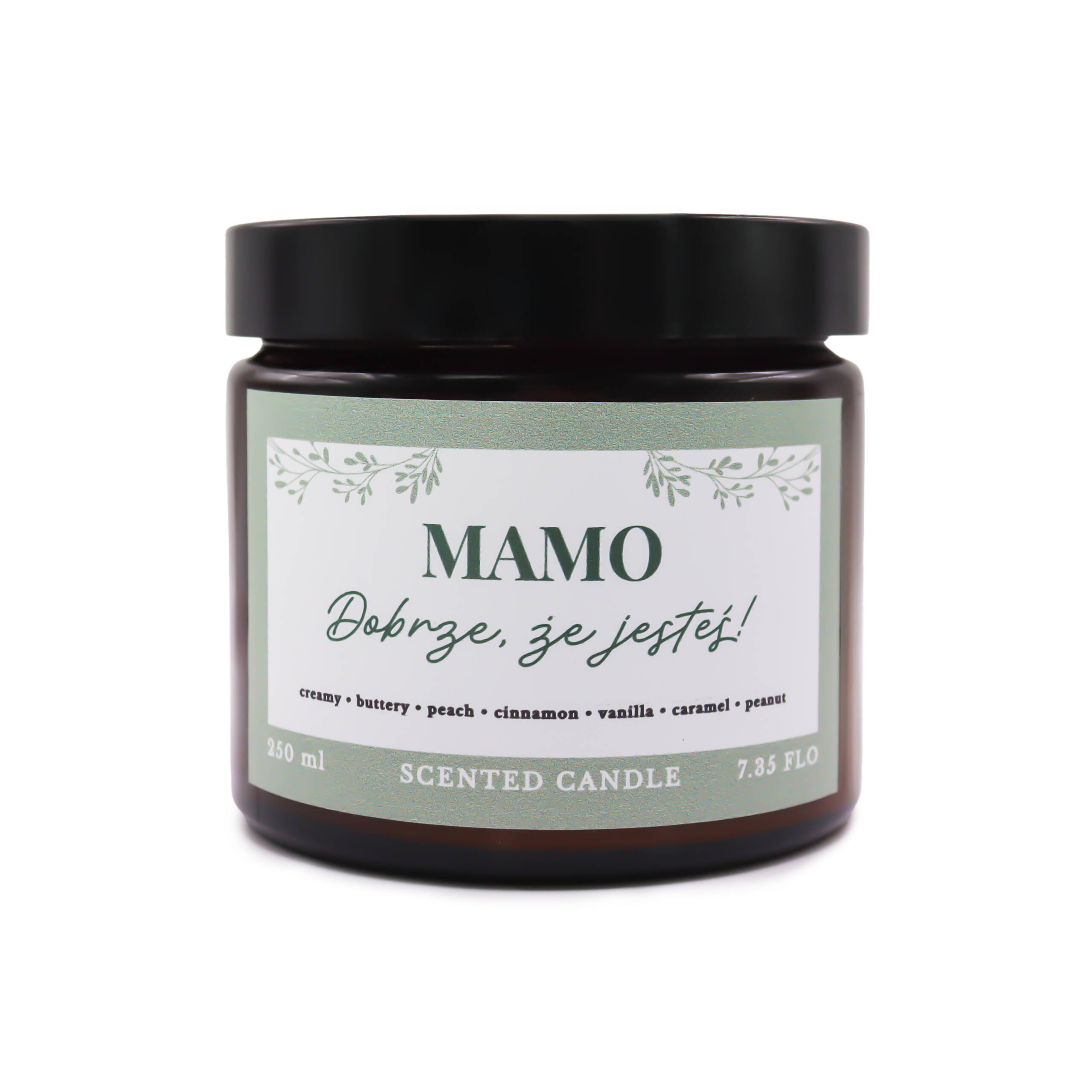 Świeca sojowa Bourbon Vanilla & Nuts „Mamo Dobrze, że jesteś” 250 ml to wyjątkowe połączenie naturalnego zapachu i pięknego przekazu. Kompozycja słodkiej wanilii bourbon oraz delikatnych nut orzechowych tworzy harmonijny, otulający aromat, który wprowadza do wnętrza ciepło i przyjemną atmosferę.
