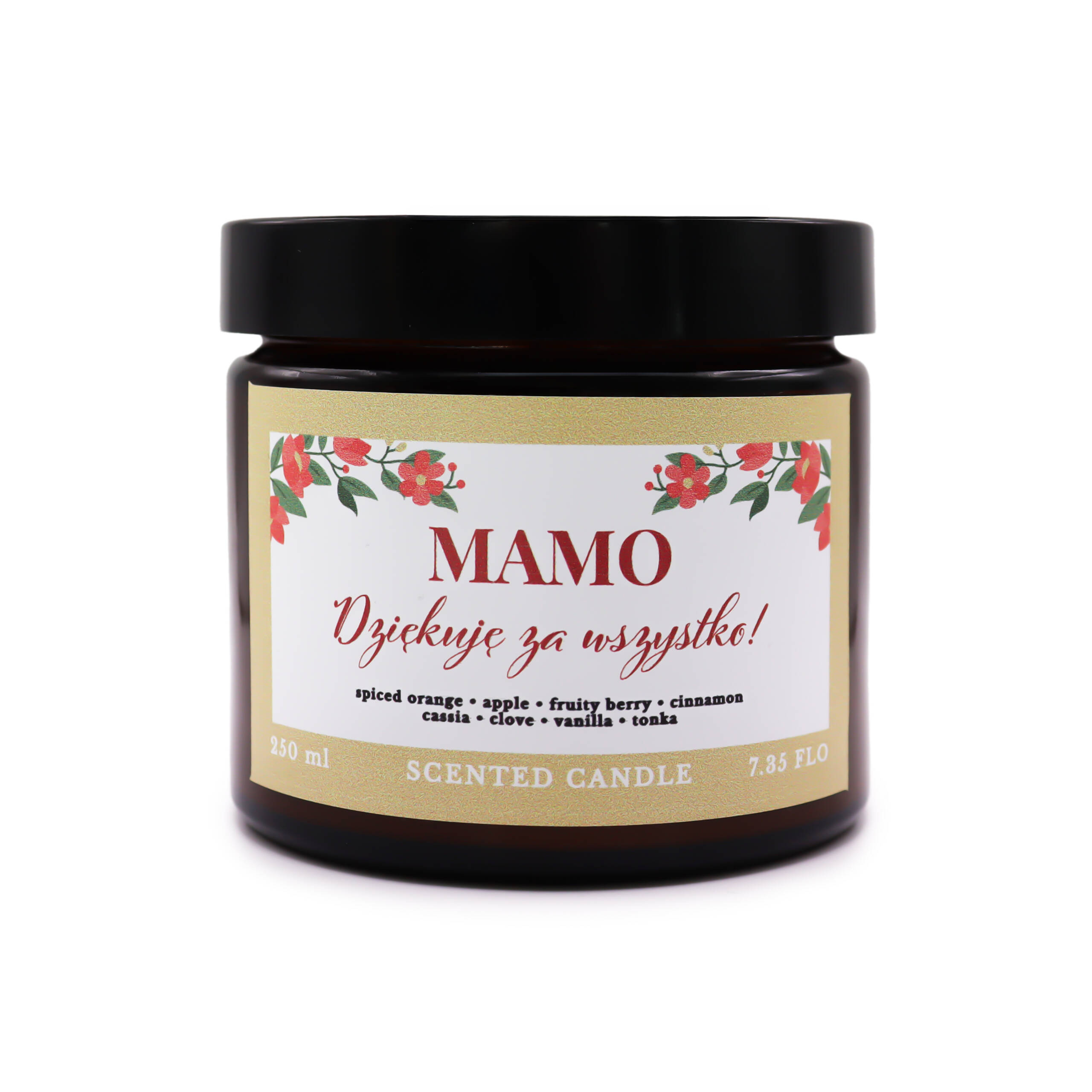 Świeca sojowa Hot Wine „Mamo Dziękuję Za Wszystko” 250 ml to wyjątkowy sposób, by wyrazić wdzięczność i miłość. Inspirowana aromatem grzanego wina, łączy nuty czerwonych owoców, soczystej pomarańczy oraz rozgrzewających przypraw, takich jak cynamon i goździki. Tworzy przytulny, otulający zapach, który wprowadza do wnętrza ciepło i spokój.